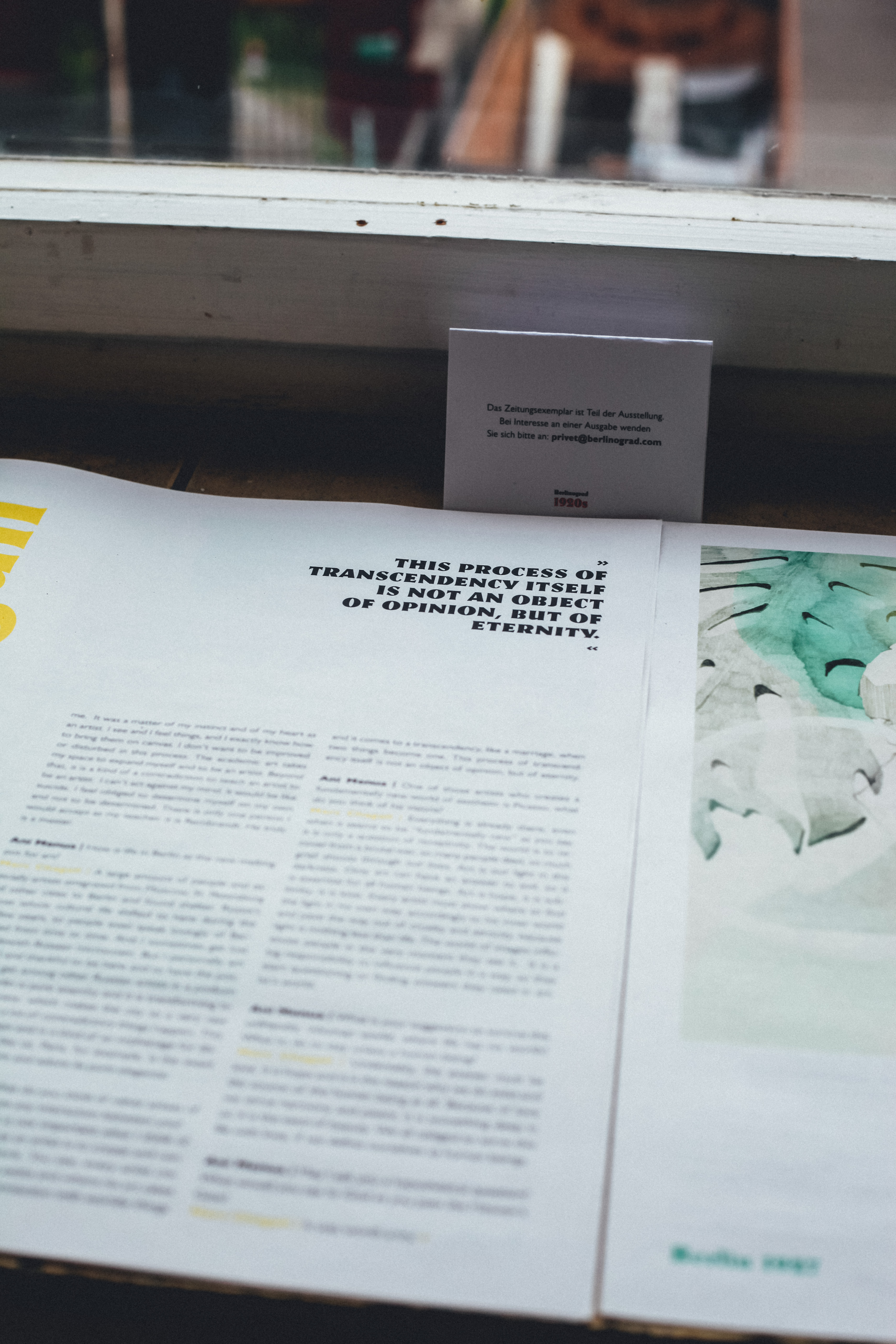 The exhibition “Berlinograd 1920s” is based on our same-named Berlinograd column which transports the reader on fictional journeys into the world of Berlinograd. The column itself is an art project by author Ani Menua together with illustrator Ekaterina Koroleva who combine text and illustration to create a world that allows us to meet and speak with Russian artists. Together with the designer Helena Melikov as well as the Beatrice Grundheber, the editor-in-chief of Berlinograd.com, the exhibition “Berlinograd 1920s” was created.